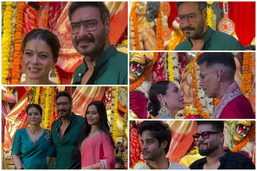 पूजा के मौके पर सबसे पहले नजर आए अजय देवगन, काजोल और उनकी बेटी निसा देवगन, जिन्होंने मिलकर मां दुर्गा के चरणों में प्रार्थना अर्पितकी। काजोल की क्लासिक साड़ी और नीसा का आधुनिक पारंपरिक लुक सबका ध्यान खींच रहा था। अजय देवगन ने हमेशा की तरह परिवार कासाथ देते हुए सादगी और सम्मान का संदेश दिया। वहीं, युवा पीढ़ी के अम्मान और दानिश देवगन की मौजूदगी ने इस परंपरा की निरंतरता की उम्मीदजगाई।