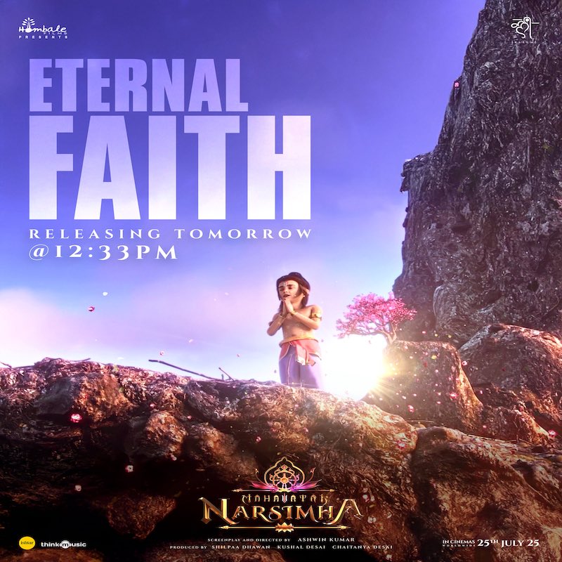 होम्बले फिल्म्स ने अपनी आगामी एनिमेटेड महाकाव्य फिल्म महावतार नरसिंह से एटरनल फेथ नामक पोस्टर जारी किया है, जिसमें आध्यात्मिकताऔर शक्ति की झलक देखने को मिलती है। पोस्टर के साथ कैप्शन में लिखा गया है — “धर्म का उदय प्रारंभ होता है… कल दोपहर 12:33 बजे।” यह फिल्म महावतार सिनेमैटिक यूनिवर्स की पहली कड़ी के रूप में पेश की जा रही है।