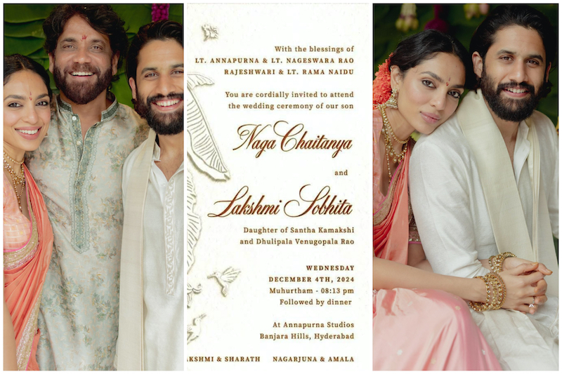 खूबसूरत कलाकार 4 दिसंबर को एक-दूजे का हाथ थामेंगे और सात फेरे लेंगे। वायरल ऑफ व्हाइट कलर के कार्ड में शादी की तारीख स्पष्ट देखी जासकती है, जो कि रेड कलर से प्रिंट है। बता दें कि तेलुगू एक्टर नागा चैतन्य और शोभिता धुलिपाला ने हाल ही में सगाई की थी। दोनों ने हैदराबाद मेंअपने करीबी दोस्तों और रिश्तेदारों की मौजूदगी में एक-दूसरे को अंगूठियां पहनाईं।