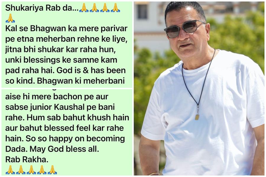 इस मौके पर विक्की के पिता और दिग्गज एक्शन डायरेक्टर शाम कौशल ने सोशल मीडिया पर अपने भाव साझा किए। उन्होंने इंस्टाग्राम पर एकभावनात्मक नोट लिखते हुए कहा, “कल से मैं भगवान का अपने परिवार पर इतनी कृपा करने के लिए जितना भी धन्यवाद करूं, वह कम है। भगवानबहुत दयालु रहे हैं। ईश्वर की कृपा मेरे बच्चों और सबसे छोटे कौशल पर बनी रहे। हम सब बहुत खुश और धन्य महसूस कर रहे हैं। दादा बनकर बेहदगर्व महसूस हो रहा है।”