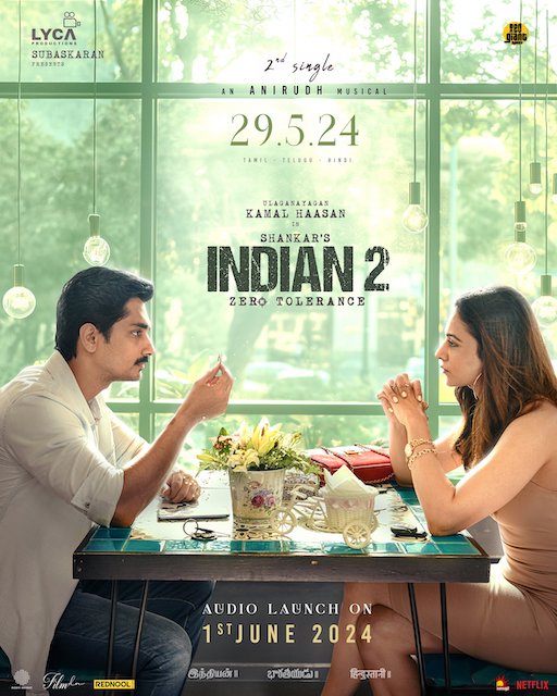 फिल्म का दूसरा गाना भी जल्द ही दर्शकों के बीच धमाल मचाने वाला है। यह एक रोमांटिक गाना होगा, जिसमें सिद्धार्थ और रकुल प्रीत सिंह नजरआएंगे। दूसरा गाना 29 मई को रिलीज होगा। 'इंडियन 2' के निर्माताओं ने 27 मई को अपने सोशल मीडिया पेज पर चार भाषाओं में आधिकारिकपोस्टर साझा किए। पोस्टर से फिल्म में सिद्धार्थ और रकुल प्रीत सिंह के बीच रोमांटिक रिश्ते का संकेत मिला। पोस्टर के साथ कैप्शन में लिखा, 'एकसिम्फनी खिलने वाली है। रॉकस्टार अनिरुद्ध संगीतमय इंडियन-2 का दूसरा सिंगल 29 मई को रिलीज हो रहा है। बह जाने के लिए तैयार हो जाइए।'