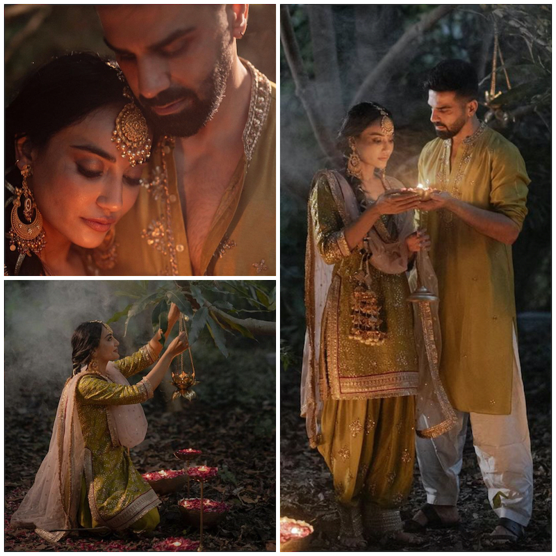 तस्वीरें शेयर करते हुए सुरभि ने लिखा, "ये जड़ें गहरी हैं, धूप और बारिश और कई कहानियां लेकर चलती हैं। सुमित और मैंने प्रकृति की पवित्रछत्रछाया में, ऊंचे खड़े पेड़ों और हमें संपूर्ण बनाए रखने वाले पांच तत्वों का सम्मान करते हुए, यहां अपनी यात्रा शुरू करने का फैसला किया है।" तस्वीरों में सुरभि लाइम ग्रीन पटियाला सूट पहने हुए नजर आईं। वहीं सुमित ने ज्योति के साथ मिलकर कढ़ाई वाला कुर्ता पहना हुआ था। जल्दही शादी करने वाले इस कपल ने जिम कॉर्बेट के जंगल में पोज दिया है।