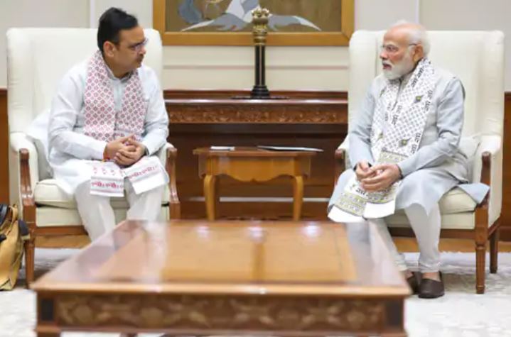 मुंबई, 27 अक्टूबर, (न्यूज़ हेल्पलाइन)। राजस्थान के मुख्यमंत्री भजनलाल शर्मा ने सोमवार को दिल्ली में प्रधानमंत्री नरेंद्र मोदी से मुलाकात की। मुख्यमंत्री कार्यालय ने इस मुलाकात को शिष्टाचार भेंट बताया है, लेकिन राजनीतिक हलकों में इसे आगामी मंत्रिमंडल फेरबदल से जोड़कर देखा जा रहा है। माना जा रहा है कि दोनों नेताओं के बीच कैबिनेट विस्तार, राजनीतिक नियुक्तियों और सरकार के कामकाज पर विस्तार से चर्चा हुई। हाल ही में गुजरात में पूरे मंत्रिमंडल के इस्तीफे के बाद वहां नए सिरे से फेरबदल किया गया था, जिसके बाद अब राजस्थान में भी ऐसे ही बदलाव की संभावना जताई जा रही है।