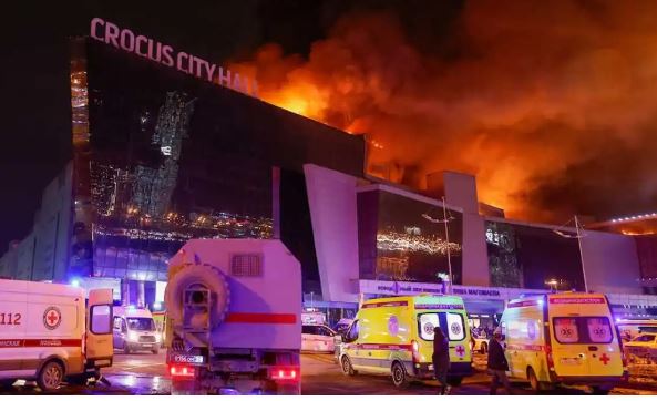 रूस की एफएसबी (संघीय सुरक्षा सेवा) के अनुसार, मॉस्को के पास एक कॉन्सर्ट हॉल में लड़ाकू गियर में बंदूकधारियों के एक समूह द्वारा की गई गोलीबारी में 60 से अधिक लोग मारे गए और 145 अन्य घायल हो गए।रूसी समाचार खातों के अनुसार, हमलावरों ने विस्फोटक फेंके, जिससे मॉस्को के पश्चिमी बाहरी इलाके में स्थित क्रोकस सिटी हॉल में भीषण आग लग गई। सोशल मीडिया पर प्रसारित हो रही सामग्री में संरचना से निकलते काले धुएं के विशाल स्तंभों को दर्शाया गया है