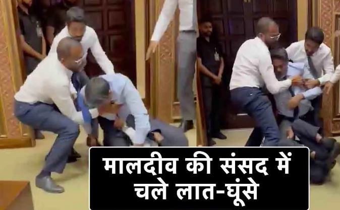 आज मालदीव की संसद का विशेष सत्र बुलाया गया था लेकिन जो हुआ वो और भी खास हो गया. दरअसल, यह सत्र हालिया चुनाव में जीत हासिल करने वाले राष्ट्रपति मोहम्मद मुइज़ू की कैबिनेट को मंजूरी देने के लिए बुलाया गया था। लेकिन इस बीच सत्ता पक्ष और विपक्ष के सांसदों के बीच जमकर नोकझोंक हुई. इस घटना का वीडियो वायरल हो रहा है.