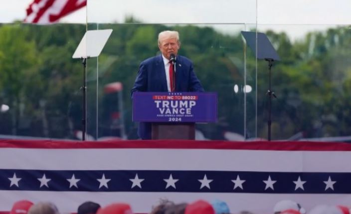 पिछले महीने एक हत्या के प्रयास से बचने के बाद अपनी पहली आउटडोर रैली में, पूर्व राष्ट्रपति डोनाल्ड ट्रम्प ने बुधवार को उत्तरी कैरोलिना में समर्थकों को संबोधित किया, और राष्ट्रीय सुरक्षा पर केंद्रित एक कार्यक्रम में बुलेटप्रूफ ग्लास के पीछे से बात की। ट्रम्प, जो अब रिपब्लिकन राष्ट्रपति पद के उम्मीदवार हैं, ने भी एक रात पहले डेमोक्रेटिक नेशनल कन्वेंशन (डीएनसी) में अपनी टिप्पणियों के लिए अपने राजनीतिक प्रतिद्वंद्वियों, विशेष रूप से पूर्व राष्ट्रपति बराक ओबामा और उनकी पत्नी मिशेल ओबामा पर निशाना साधा।