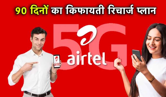 अगर आप हर महीने रिचार्ज कराने से राहत पाना चाहते हैं या 84 दिन की वैलिडिटी वाला रिचार्ज कराना चाहते हैं तो इससे ज्यादा वैलिडिटी वाला सस्ता रिचार्ज प्लान ले सकते हैं। आज हम आपके लिए 90 दिनों की वैलिडिटी वाला किफायती रिचार्ज प्लान लेकर आए हैं, जिसमें 5G का अनलिमिटेड डेटा बेनिफिट मिलेगा। इसके अलावा कॉलिंग और एसएमएस बेनिफिट भी मिलते हैं। आइए जानते हैं एयरटेल के 90 दिनों वाले सस्ते प्लान के बारे में। देश की दूसरी सबसे प्रमुख टेलीकॉम कंपनी एयरटेल अपने ग्राहकों को हर दिन बेहतर नेटवर्क और इंटरनेट सुविधाएं देने का दावा करती है। इन दावों के अलावा एयरटेल अपने ग्राहकों के लिए शानदार रिचार्ज प्लान भी पेश करता है। कंपनी अपने ग्राहकों को पोस्टपेड और प्रीपेड रिचार्ज प्लान पेश करती है, जो अलग-अलग कीमत, वैधता और लाभ के साथ आते हैं।