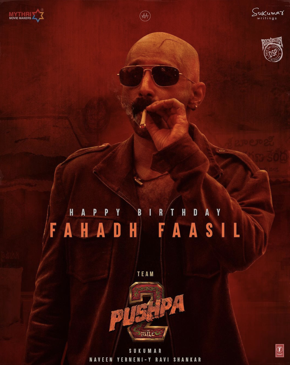 के लुक के बाद अब फिल्म के खतरनाक विलेन का लुक भी रिलीज़ कर दिया गया है. भंवर सिंह शेखावत इस बार और भी किलर लुक में होंगे. ये किरदार फहाद फासिल ने बखूबी निभाया है और अब उनके जन्मदिन