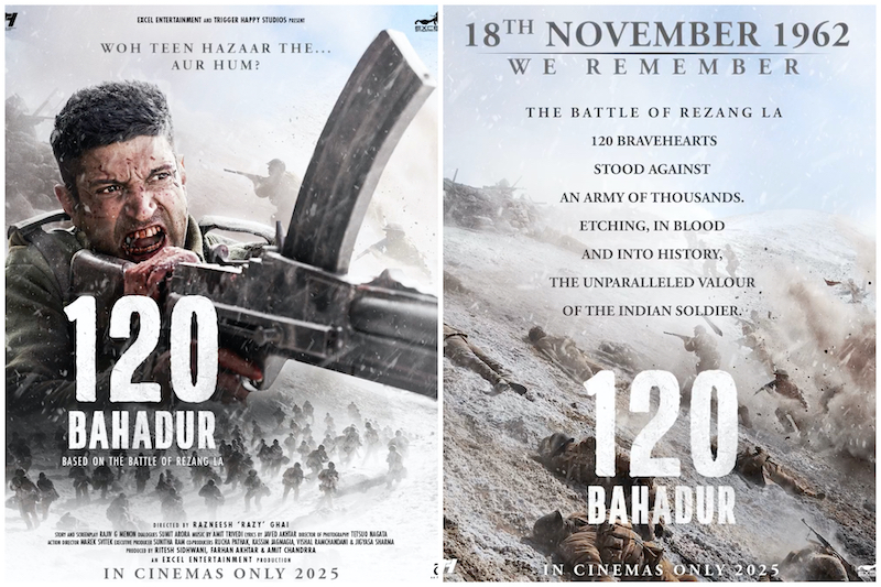 रेजांग ला के वीर नायकों को समर्पित, 120 बहादुर एक्सेल एंटरटेनमेंट और ट्रिगर हैप्पी स्टूडियोज द्वारा निर्मित एक भावनात्मक श्रद्धांजलि है। उनकीबहादुरी की गाथा आज भी पूरे देश को प्रेरणा देती है। फरहान अख्तर ही इस फिल्म मेजर शैतान सिंह का रोल निभाते हुए नजर आएंगे। फिल्म अगलेसाल 2025 को सिनेमाघरों में रिलीज होगी।