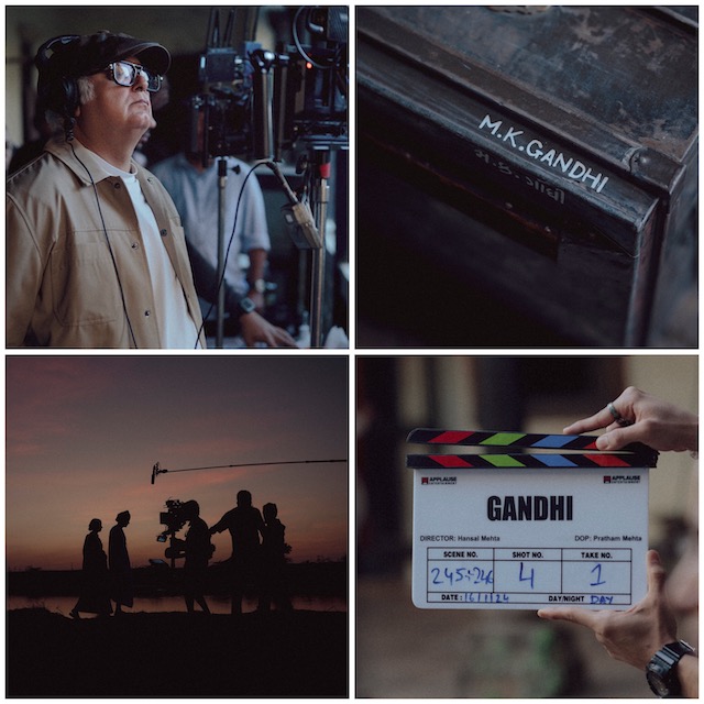 शूट से तस्वीरें शेयर करते हुए हंसल मेहता ने अपने पोस्ट को कैप्शन दिया, “बनते हुए इतिहास को कैद करना! #गांधीअभी फिल्मांकन कर रहे हैं।"