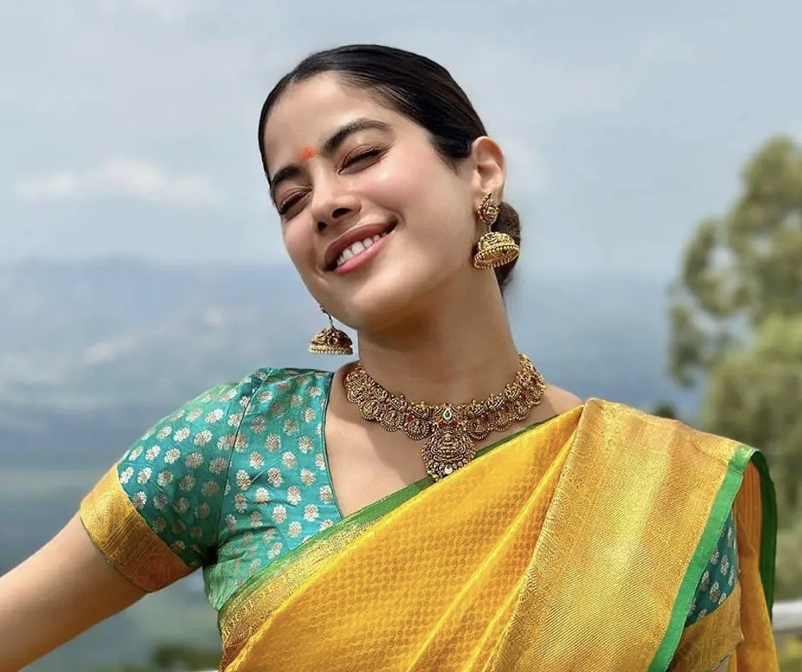 श्रीदेवी की जयंती पर उनकी बेटी और एक्ट्रेस जान्हवी कपूर तिरुमाला पहुंचीं। उनके बॉयफ्रेंड शिखर पहाड़िया भी साथ दिखे। दोनों ने यहां श्री वेंकटेश्वर स्वामी का आशीर्वाद लिया।जान्हवी साउथ इंडियन लुक में नजर आईं। उन्होंने ग्रीन कलर के ब्लाउज के साथ पीली रंग की साड़ी पहनी थी। वहीं कानों में झुमके, नेकलेस और कमरबंद उनके लुक में चार चांद लगा रहा था। उन्होंने लुक को पूरा करने के लिए बालों का जुड़ा बनाया था।