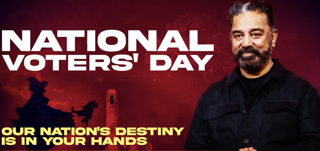 सुपरस्टार कमल हासन ने राष्ट्रीय मतदाता दिवस मनाया और मतदाताओं को वोट देने के लिए एक शक्तिशाली संदेश शेयर किया।