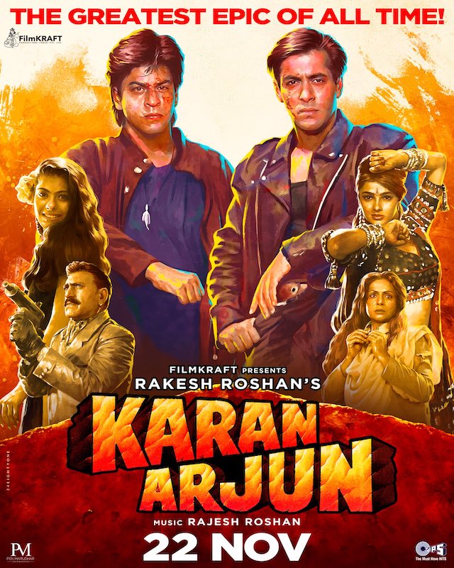 'करण अर्जुन' में सलमान और शाहरुख खान के साथ काजोल, राखी, ममता कुलकर्णी और अमरीश पुरी ने शानदार अभिनय किया था। फिल्म कानिर्देशन राकेश रोशन ने किया। 1995 में आई इस फिल्म को पहली बार बड़े पर्दे पर लाया गया था। फिल्म में शाहरुख खान और सलमान खान कोसाथ में देखा गया था। फिल्म ने 76 हफ्तों तक सिनेमाघरों में शानदार प्रदर्शन किया था।