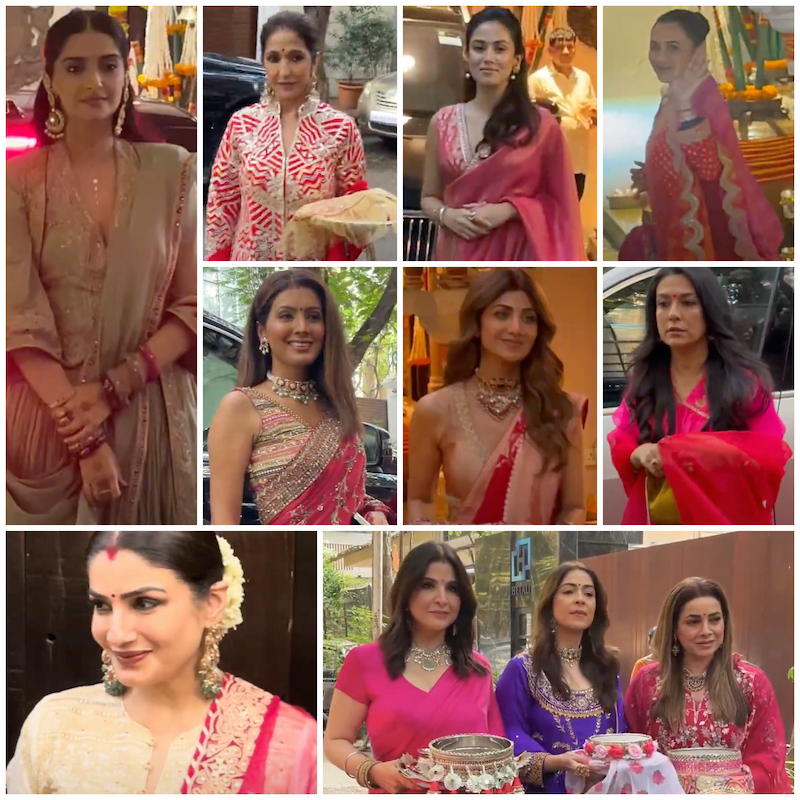 उपस्थित लोगों में गीता बसरा, मीरा राजपूत और रवीना टंडन जैसी अभिनेत्रियाँ शामिल थीं, जिन्होंने करवा चौथ के लिए शानदार परिधानों में नजरआई!