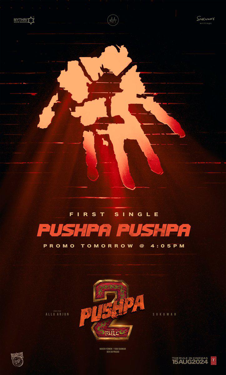 भारी डिमांड के चलते, मेकर्स ने एक नया पोस्टर रिलीज किया है, और अल्लू अर्जुन और रश्मिका मंदाना स्टारर फिल्म के फर्स्टसॉन्ग 'पुष्पा पुष्पा' की घोषणा करके सभी को चौंका दिया। सॉन्ग के लिरिक्स का प्रिव्यू आज शाम 4:05 बजे रिलीज किया जाएगा। ऐसे में मेकर्स ने सॉन्ग की घोषणा के साथ ही सोशल मीडिया पर नया पोस्टर शेयर करते हुए कैप्शन में लिखा है: "दुनिया जल्द ही पुष्पराज की तारीफों के गीत जाएगी"