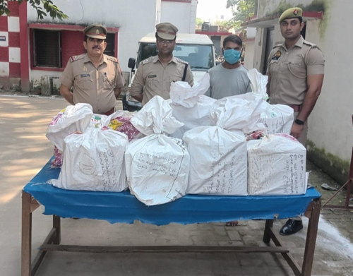 उत्तर प्रदेश के बिजनौर जिले में कोतवाली नगर पुलिस और आबकारी विभाग की संयुक्त कार्रवाई में अवैध रूप से देशी और विदेशी शराब बेचने के आरोप में एक तस्कर को गिरफ्तार किया गया है.तस्कर के पास से हरियाणा मार्का एवं अरूणाचल प्रदेश मार्का के विभिन्न ब्रांड के विदेशी शराब के 11 कार्टन (जिसमें 109 बोतलें) बरामद किया गया।बिजनौर में आबकारी विभाग की टीम ने पुलिस के साथ मिलकर अलग-अलग जगहों पर छापेमारी कर भारी मात्रा में महंगे ब्रांड की देशी और विदेशी शराब बरामद की है. इस मामले में एक व्यक्ति को गिरफ्तार किया गया था. 2 अक्टूबर को सूखा दिवस होने के कारण यह व्यक्ति अवैध रूप से ऊंचे दाम पर शराब बेच रहा था।कोतवाली नगर थाना प्रभारी (एसएचओ) राजीव चौधरी ने बुधवार को बताया कि पुलिस और आबकारी विभाग को सूचना मिली थी कि बिजनौर की कृष्णापुरम कॉलोनी में शराब की तस्करी की जा रही है.सूचना मिलते ही आबकारी निरीक्षक क्षेत्र-1 सदर बिजनौर ने थाना कोतवाली सिटी पुलिस के साथ एक मकान पर छापा मारा। वहां से एक आरोपी हरेंद्र को गिरफ्तार कर लिया गया. जब उसका एक समझदार विवेक मौके से भाग गया। उसके पास से विभिन्न ब्रांड की अंग्रेजी शराब की 200 एमएल की 109 बोतलें बरामद की गईं।