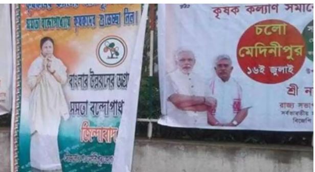 पश्चिम बंगाल में भारतीय जनता पार्टी (बीजेपी) और तृणमूल कांग्रेस (टीएमसी) के बीच पोस्टर वार सुप्रीम कोर्ट तक पहुंच गया है. कोर्ट ने मामले की सुनवाई करते हुए बीजेपी की याचिका खारिज कर दी और चुनाव आयोग की निष्क्रियता पर हैरानी जताई.कलकत्ता हाई कोर्ट ने पहले बीजेपी को टीएमसी के खिलाफ आपत्तिजनक पोस्टर लगाने से रोक दिया था, जिसके बाद बीजेपी ने सुप्रीम कोर्ट में याचिका दायर की थी। हालाँकि, सुप्रीम कोर्ट ने बीजेपी की याचिका यह कहते हुए खारिज कर दी कि विचाराधीन विज्ञापन वास्तव में आपत्तिजनक था।