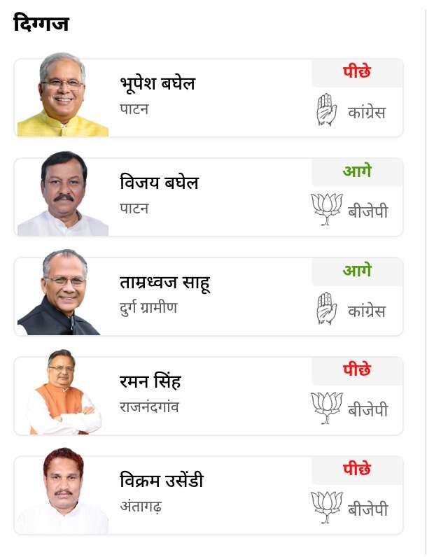1.कांग्रेस नेता भूपेश बघेल- पाटन सीट पर आगे
