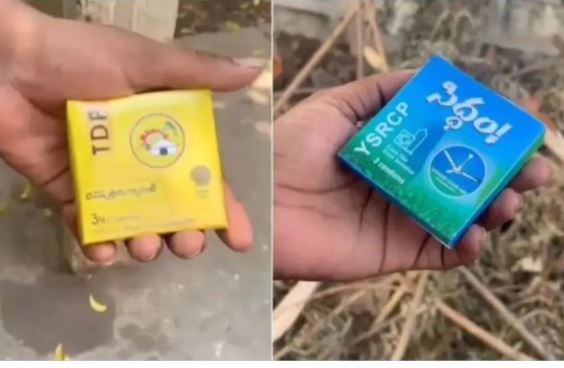 खबरों के मुताबिक, सत्तारूढ़ वाईएसआर कांग्रेस पार्टी और विपक्षी तेलुगु देशम पार्टी (टीडीपी) अपनी पार्टी के चुनाव चिन्ह छपे कंडोम बांट रहे हैं। बताया जा रहा है कि पार्टी कार्यकर्ता घर-घर जाकर कंडोम भी बांट रहे हैं. हालांकि, दोनों पक्षों ने इस पर सवाल उठाए हैं. इस मामले में मुख्यमंत्री जगन मोहन रेड्डी की पार्टी वाईएसआर कांग्रेस ने भी प्रतिक्रिया दी है.