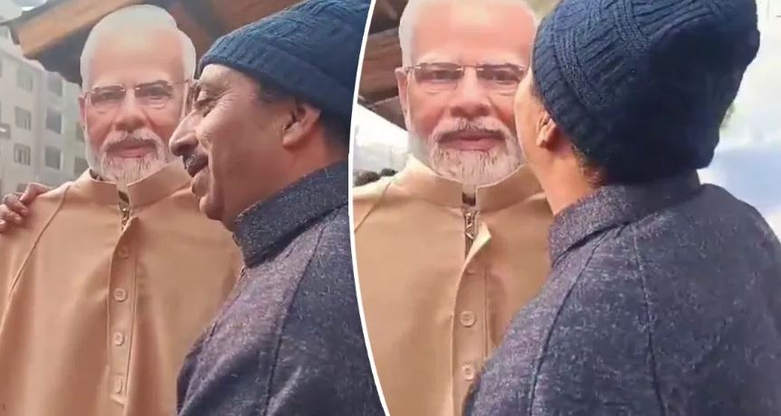 प्रधानमंत्री नरेंद्र मोदी का प्रतिमा को चूमने का एक अनोखा वीडियो सोशल मीडिया पर वायरल हो रहा है। इस वीडियो में एक कश्मीरी शख्स पीएम मोदी की मूर्ति को चूमता नजर आ रहा है. वह अपनी मूर्ति को अपने हाथों से साफ करते भी नजर आ रहे हैं. फ्रैंक डे के मौके पर इस कश्मीरी शख्स ने श्रीनगर में घंटाघर के सामने लगी पीएम मोदी की प्रतिमा को चूम लिया. अब यह वीडियो सोशल मीडिया पर खूब शेयर किया जा रहा है.