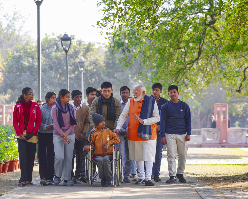उन्होंने छात्रों से अपने समय का प्रभावी प्रबंधन करने के लिए योजनाबद्ध तरीके से उपयोग करने को कहा। प्रधानमंत्री ने 'अपने समय को नियंत्रित करें, अपने जीवन को नियंत्रित करें, वर्तमान में जिएं, सकारात्मकता खोजें, फलने-फूलने के लिए पोषण करें' जैसे मुद्दों पर बात की, छात्रों ने उनसे विभिन्न मामलों पर सवाल पूछे। पारंपरिक टाउन हॉल प्रारूप से हटकर, मोदी ने इस बार अधिक अनौपचारिक सेटिंग को प्राथमिकता दी और लगभग 35 छात्रों को यहां सुंदर नर्सरी ले गए तथा अधिक गहन और मुक्त बातचीत की।