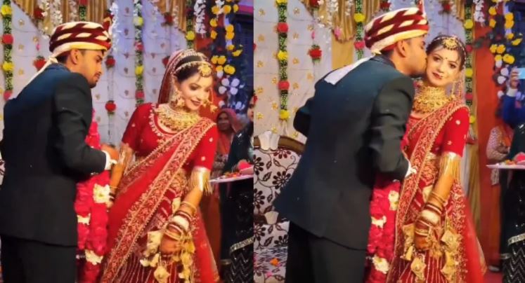 शादी के दौरान सबकी निगाहें दूल्हा-दुल्हन पर होती हैं। मंच पर जयमाला के दौरान बड़ी संख्या में लोग कैमरे के साथ मौजूद हैं. स्टेज पर कैमरे के सामने एक दूल्हे ने दुल्हन से एक डिमांड कर दी और मांग पूरी होने तक माला पहनने से इनकार कर दिया. ये वीडियो सोशल मीडिया पर खूब वायरल हो रहा है. फिर दुल्हन से कुछ कहा, इसके बाद दुल्हन थोड़ा आगे आई और फिर दूल्हे ने दुल्हन के गाल पर किस कर लिया. यह देख वहां मौजूद लोगों ने हंगामा शुरू कर दिया। ये वीडियो सोशल मीडिया पर खूब वायरल हो रहा है. वीडियो पर लोगों के तरह-तरह के कमेंट्स आ रहे हैं. वीडियो में देखा जा सकता है कि दूल्हा-दुल्हन स्टेज पर खड़े हैं और जयमाल होने वाला है. मंच पर कई अन्य लोग भी हैं. इसी बीच दूल्हा दुल्हन के कान में कुछ फुसफुसाता है, जिस पर दुल्हन 'नहीं' में सिर हिला देती है। इसके बाद दूल्हे ने वरमाला डालने से इनकार कर दिया.