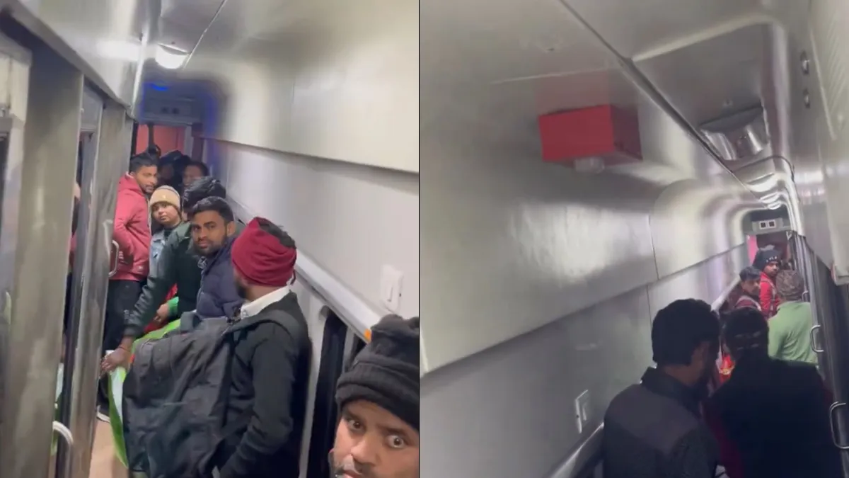 सोशल मीडिया पर वायरल हो रहे इस वीडियो में देखा जा सकता है कि महानंदा एक्सप्रेस के प्रीमियर फर्स्ट एसी कोच में दिख रही भीड़ के पास टिकट नहीं था और वह बिना टिकट के ही ट्रेन में चढ़ गए. वीडियो के साथ कैप्शन में महिला ने लिखा कि महानंदा एक्सप्रेस के फर्स्ट एसी कोच में कई लोग बिना टिकट के यात्रा कर रहे हैं, जिससे उन लोगों को परेशानी हो रही है जिन्होंने टिकट के लिए पैसे दिए हैं. वीडियो में एसी फर्स्ट टियर कोच का गलियारा आस-पास खड़े लोगों से भरा हुआ नजर आ रहा है.