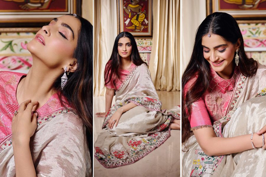 सोनम कपूर आहूजा करवाचौथ के अवसर पर लक्जरी एटेलियर ज़ोया के खूबसूरत आभूषणों के साथ कॉउचर साड़ी में नजर आईं। अपने इंस्टाग्राम पोस्ट में, स्टाइल आइकन गुलाबी ब्लाउज के साथ बेज, कढ़ाई वाली साड़ी पहने हुए आराम से फर्श पर बैठी हुई दिखाई दे रही है। सोनम ने अपनी पोस्ट में कहा, "मैं प्यार, विश्वास और एकजुटता का जश्न मनाने और सजने-संवरने का कोई भी मौका लूंगा।" जो चीज हमारा ध्यान खींचती है वह हैं शानदार हीरे जो उन्होंने अपने लुक को निखारने के लिए इस्तेमाल किए हैं। उन्होंने अंत में कहा, "पागल हीरों @zoyajewels के लिए धन्यवाद।"