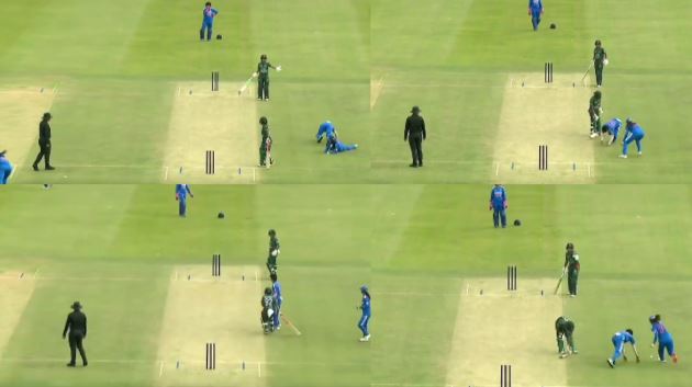 BAN Vs IND: एक थ्रो पर 3 खिलाड़ी गिरी नीचे, Video देख फैंस ने लिए...