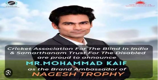 क्रिकेट एसोसिएशन फॉर द ब्लाइंड इन इंडिया (CABI) ने दिव्यांगों के लिए शरतराम ट्रस्ट के सहयोग से पूर्व भारतीय क्रिकेटर मोहम्मद कैफ को पुरुषों के राष्ट्रीय टी20 क्रिकेट टूर्नामेंट के छठे संस्करण के लिए ब्रांड एंबेसडर घोषित किया है। इस टूर्नामेंट को नागेश ट्रॉफी के नाम से भी जाना जाता है। एक ब्रांड और सद्भावना दूत के रूप में मोहम्मद कैफ का लक्ष्य भारत में नेत्रहीन क्रिकेट के लिए काम करना और दृष्टिबाधित खिलाड़ियों द्वारा दिखाई गई अदम्य ताकत को उजागर करना है।