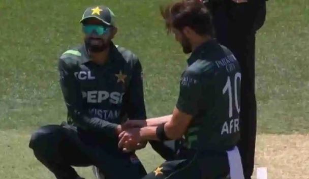 पर्थ में पाकिस्तान और ऑस्ट्रेलिया के बीच तीसरे और निर्णायक एकदिवसीय मैच के दौरान, पाकिस्तानी तेज गेंदबाज शाहीन अफरीदी ने थ्रो फेंकने का प्रयास करते समय अपना बायां अंगूठा घायल कर लिया। चोट 26वें ओवर में लगी जब सीन एबॉट ने गेंद को मिडविकेट की ओर मारा और नॉन-स्ट्राइकर छोर पर खड़े शाहीन के अंगूठे पर चोट लग गई। जैसे ही फिजियो सहायता के लिए तैयार हुए, अफरीदी के साथी बाबर आजम ने मामले को सचमुच अपने हाथों में ले लिया। तेजी से वायरल हुए एक वीडियो में, बाबर शाहीन के अंगूठे को वापस खींचते हुए दिखाई दे रहा है, जिससे गेंदबाज को कुछ राहत मिल रही है। यहां तक ​​कि टिप्पणीकारों ने भी बाबर के अचानक चिकित्सा हस्तक्षेप पर आश्चर्य व्यक्त किया।