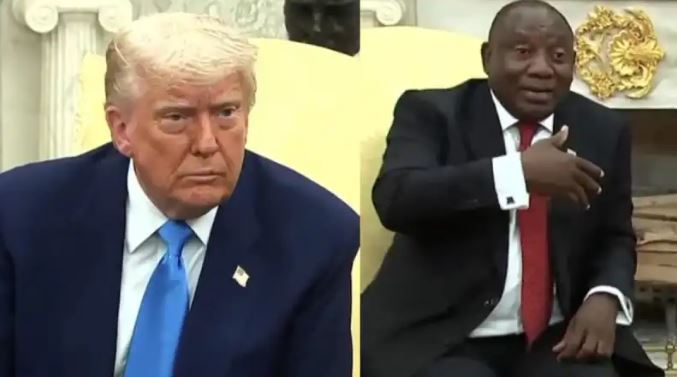 दक्षिण अफ्रीका के राष्ट्रपति सिरिल रामाफोसा 21 मई 2025 को अमेरिकी राजधानी वाशिंगटन पहुंचे, जहां उनकी अमेरिकी राष्ट्रपति डोनाल्ड ट्...