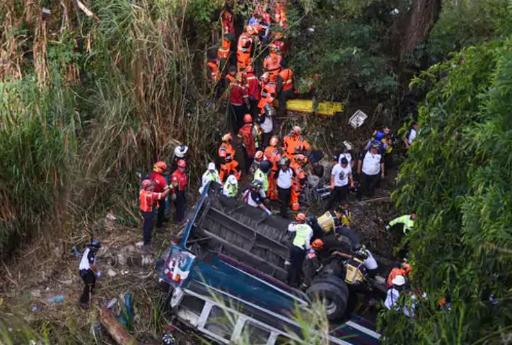 मुंबई, 11 फरवरी, (न्यूज़ हेल्पलाइन)। मध्य अमेरिका में स्थित ग्वाटेमाला देश की राजधानी ग्वाटेमाला सिटी में सोमवार को एक बस पुल से नीचे गिर गई। न्यूज एजेंसी रॉयटर्स के मुताबिक इस हादसे में 55 लोगों की मौत हो गई। यात्रियों से भरी यह बस सैन अगस्टिन अकासागुस्तलान शहर से राजधानी जा रही थी। फायर बिग्रेड के एक अधिकारी एडविन विलाग्रान ने बताया कि हादसे से पहले कई गाड़ियां आपस में टकरा गई थीं, इसके बाद बस करीब 20 मीटर गहरे नाले में जा गिरी। हादसे के बाद आधी बस नाले में डूब गई, इस वजह से लोगों को बाहर निकलने का मौका ही नहीं मिला। सरकारी अधिकारियों के मुताबिक हादसे के वक्त बस में लगभग 70 लोग सवार थे। ग्वाटेमाला के राष्ट्रपति बर्नार्डो अरेवालो ने देश में 3 दिन के राष्ट्रीय शोक की घोषणा की। इसके साथ ही लोगों की मदद के लिए सेना और डिजास्टर एजेंसी को तैनात किया।