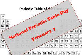राष्ट्रीय आवर्त सारणी दिवस 07 फरवरी को मनाया जाता है, जब विज्ञान के क्षेत्र में काम करने वाले लोग आधुनिक काल की आवर्त सारणी के निर्माण का जश्न मनाते हैं जिसने विज्ञान के विकास में योगदान दिया और उल्लेखनीय नवाचारों का मार्ग प्रशस्त किया। रिपोर्टों के अनुसार, कई चुनौतियों के बावजूद वैज्ञानिक तालिका के विकास की प्रशंसा करने के लिए 7 फरवरी को 2016 में उस दिन को राष्ट्रीय आवर्त सारणी दिवस के रूप में मनाया गया। विश्व स्तर पर, यह वर्ष रासायनिक तत्वों की आवर्त सारणी के प्रक्षेपण का 153वां वर्ष है। यूनेस्को ने 2019 को रासायनिक तत्वों की आवर्त सारणी के अंतर्राष्ट्रीय वर्ष के रूप में मनाया। संयुक्त राष्ट्र शैक्षिक, वैज्ञानिक और सांस्कृतिक संगठन (यूनेस्को) ने वर्ष मनाने के लिए पूरे वर्ष विज्ञान से संबंधित कार्यक्रम आयोजित किए।