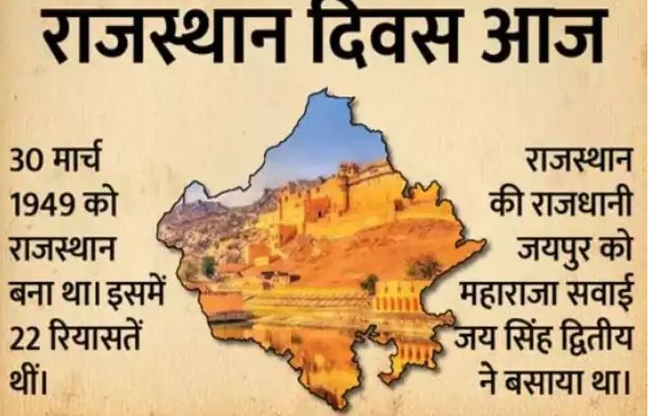 आज राजस्थान दिवस है. 1949 में आज ही के दिन 22 रियासतों का राजस्थान में विलय किया गया था। क्षेत्रफल की दृष्टि से यह देश का सबसे बड़ा राज्य है, जबकि जनसंख्या की दृष्टि से यह सातवां सबसे बड़ा राज्य है। राजस्थान की राजधानी जयपुर की स्थापना महाराजा सवाई जय सिंह द्वितीय ने की थी।