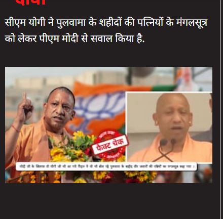वीडियो में सीएम योगी कहते हैं, ''बहनों और भाइयों हम भी पूछना चाहते हैं कि पुलवामा के शहीदों की विधवा मोदी जी के मंगलसूत्र का क्या हुआ? और नौ-युवकों के परिवार की विधवाओं का क्या हुआ, उनके मंगलसूत्र का क्या हुआ?” वीडियो के अंदर लिखा है, "इनमें से कौन बाबा के सवाल का जवाब देगा?"