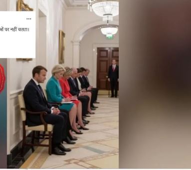 इस पोस्ट के साथ एक तस्वीर भी शेयर की गई है जिसमें फ्रांस के राष्ट्रपति इमैनुअल मैक्रों सहित कुछ अन्य वैश्विक नेता एक साथ बैठे दिखाई दे रहे हैं। इस फोटो के माध्यम से यह दावा किया गया कि ट्रंप की ताकत इन तीन नेताओं पर असर नहीं डाल पाई।