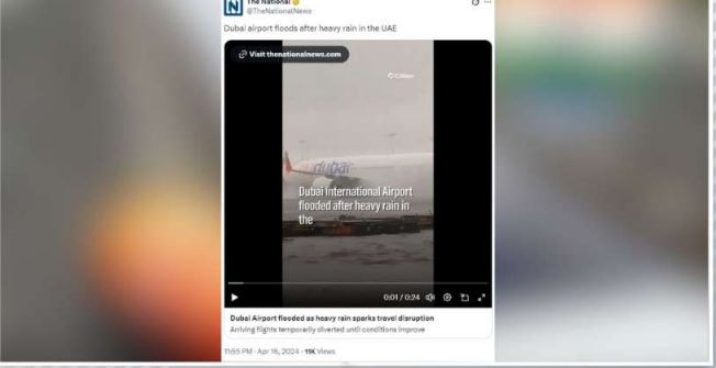 अधिक खोजबीन में यह वीडियो ‘The National’ नामक मीडिया हाउस के एक पोस्ट से जुड़ा पाया गया, जिसमें यह साफ लिखा था कि यह वीडियो दुबई एयरपोर्ट का है। वीडियो के कैप्शन में स्पष्ट उल्लेख था कि यह वीडियो यूएई के दुबई एयरपोर्ट की है, जहां भारी बारिश के कारण जलभराव हुआ था। यह घटना अप्रैल 2024 की है और इसका दिल्ली एयरपोर्ट से कोई लेना-देना नहीं।