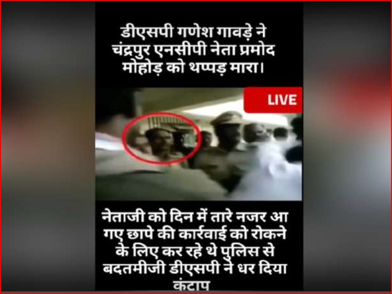 सोशल मीडिया पर एक वीडियो वायरल हो रहा है, जिसमें दावा किया जा रहा है कि एक पुलिसकर्मी ने सरेआम राष्ट्रवादी कांग्रेस पार्टी (NCP) के नेता को थप्पड़ मारा। हालांकि, तथ्य-जांच से पता चलता है कि यह वीडियो नया नहीं है, बल्कि 2013 का है।