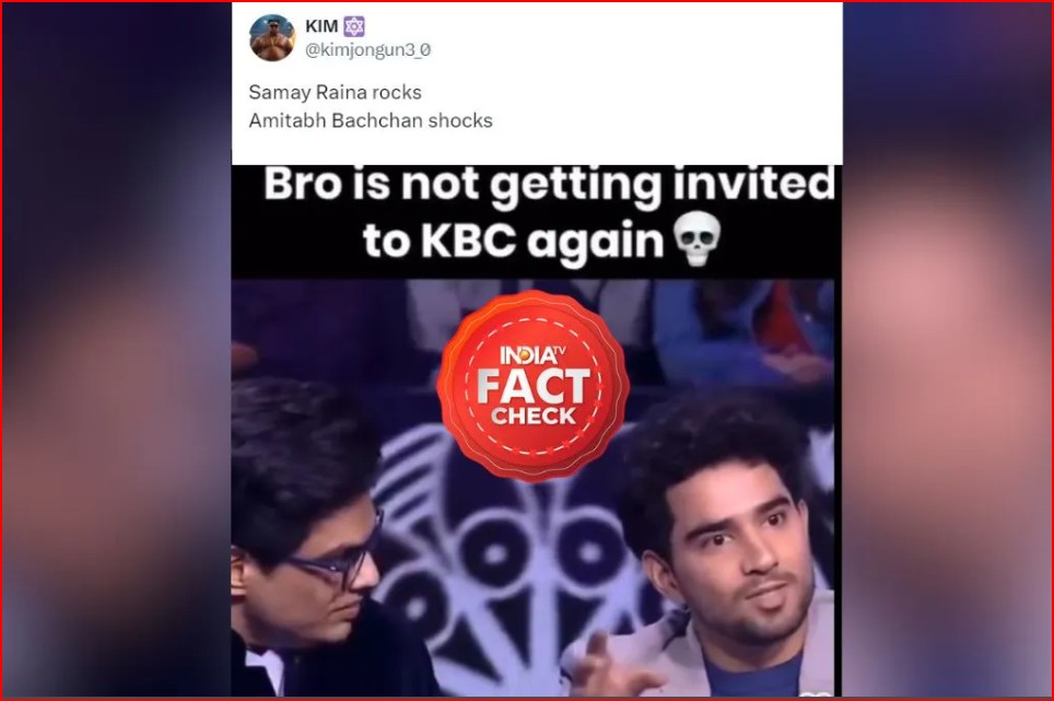 इन दिनों सोशल मीडिया पर एक वीडियो तेजी से वायरल हो रहा है। इसमें कई यूजर्स ने दावा किया है कि कॉमेडियन समय रैना ने कौन बनेगा करोड़पति सीजन 16 के सेट पर अभिनेत्री रेखा का मजाक उड़ाया था। समय रैना और बॉलीवुड के महानायक अमिताभ बच्चन को इस चुटकुले पर हंसते हुए देखा जा सकता है। हालाँकि, तथ्य-जांच से यह पुष्टि हुई कि क्लिप को संपादित करके वायरल किया जा रहा है। आपको बता दें कि समय को हाल ही में तन्मय भट्ट, भुवन बाम और कामिया जानी के साथ सोनी टीवी के लोकप्रिय क्विज़ शो के एक विशेष एपिसोड के लिए आमंत्रित किया गया था।