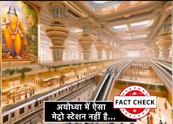 रामलला की मूर्ति के अभिषेक की तारीख घोषित होने के बाद से ही करोड़ों लोग अयोध्या आने की योजना बना रहे हैं। इस बीच सोशल मीडिया पर अयोध्या के मेट्रो स्टेशन की एक अद्भुत तस्वीर वायरल हो रही है, जिसने हर किसी को मंत्रमुग्ध कर दिया है. इस मेट्रो स्टेशन पर हर कोई आना चाहता है। लोगों के बीच इस तस्वीर की चर्चा हो रही है. जब हमने इसकी हकीकत जांची तो पता चला कि ये तस्वीर असली नहीं है और अयोध्या में ऐसा कोई मेट्रो स्टेशन नहीं है. बल्कि इस फोटो को आर्टिफिशियल इंटेलिजेंस यानी AI टूल की मदद से बनाया गया है. अयोध्या में मेट्रो नेटवर्क शुरू करने की कोई योजना अभी तक घोषित नहीं की गई है।