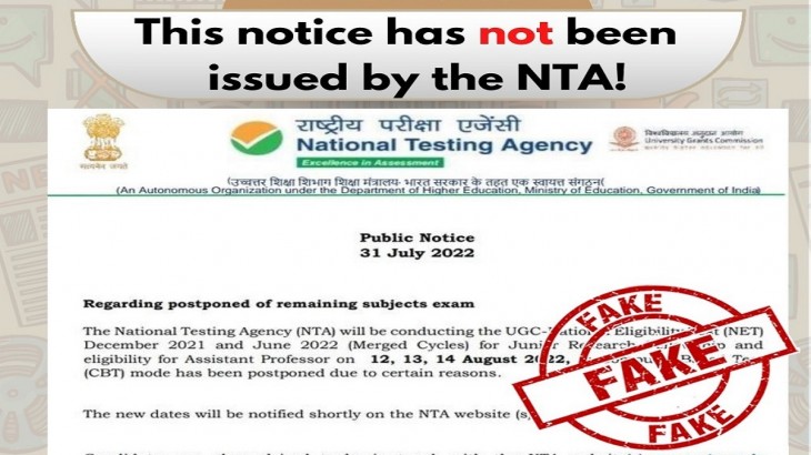 A #Fake notice being circulated in the name of the National Testing Agency claims that the UGC NET exam has been postponed#PIBFactCheck