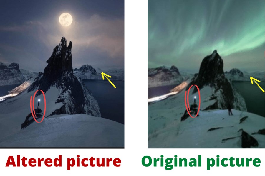 हर दिन सोशल मीडिया पर कोई न कोई तस्वीर वायरल होती ही रहती है | फेसबुक ट्विटर पर बर्फ से ढके पहाड़ों के बीच भेड़िया के मुंह की शेप की एक पहाड़ी की तस्वीर वायरल हो रही थी | यह नॉर्वे का वुल्फ माउंटेन है ऐसा दवा किआ जा रहा था | फेसबुक यूजर Ronnie Bottomley ने यह तस्वीर पोस्ट करते हुए कैप्शन में लिखा: वुल्फ माउंटेन, नॉर्वे। फिर पड़ताल में यह तस्वीर ट्वीटर में मिली | ट्विटर यूजर डोमिनिक डायर ने यह तस्वीर पोस्ट करते हुए फोटो क्रेडिट मिशेल वो कल्बे को दिया। मिशेल की इंस्टा प्रोफाइल के अनुसार वे डिजिटल आर्टिस्ट हैं। उनके हैंडल पर वायरल फोटो भी मिली | जिसे उन्होंने १३ मार्च २०२१ को पोस्ट करते हुए कैप्शन में लिखा कि जब उन्होंने नॉर्वे में पहली बार इस पहाड़ी को देखा तो उन्हें महसूस हुआ कि उसे इसके साथ कुछ क्रिएटिव करना चाहिए। इसलिए उन्होंने इस पहाड़ की शेप को चेंज कर दिया। पहाड़ी का नाम सेग्ला माउंटेन है और यह नॉर्वे में है। उन्होंने फोटोशॉप की मदद से असली पहाड़ की चोटी की शेप में बदलाव करते हुए इसे भेड़िया की शेप दे दी। असल में इस पहाड़ी की शेप भेड़िया के मुंह जैसी नहीं है। वायरल पोस्ट में किया गया दावा गलत है।