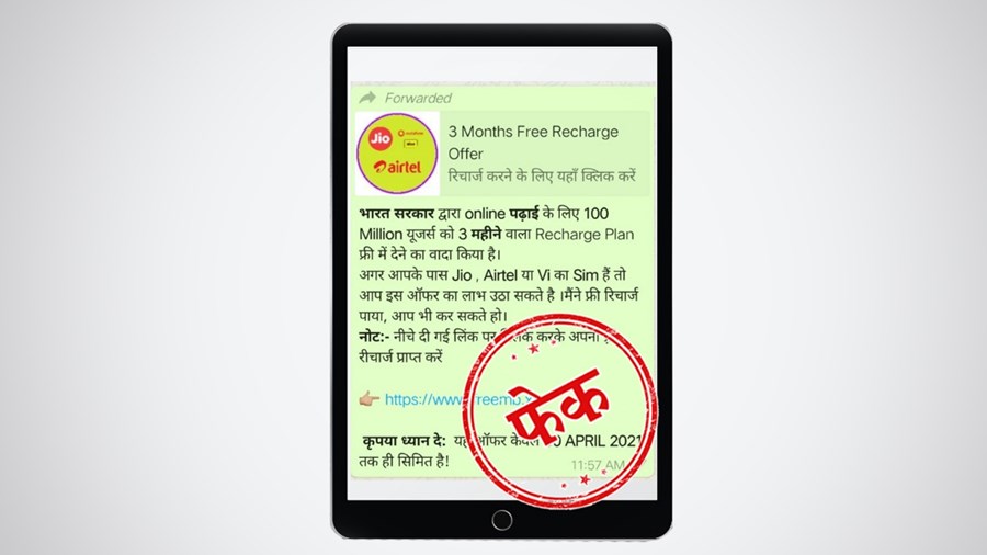 वॉट्सऐप पर वायरल मैसेज जिसका दावा ५५५ रूपए वाला मुफ्त जिओ रिचार्ज | जानिए पूरी कहानी |