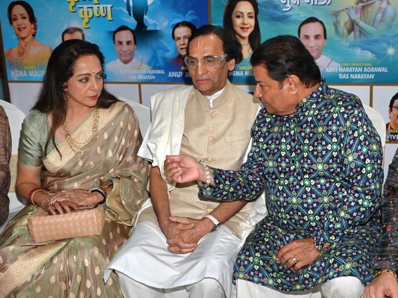Hema Malini, Nitin Mukesh, Anup Jalota, Anuradha Paudwal At Grand Release Of 4 Bhajans At ISKON Temple